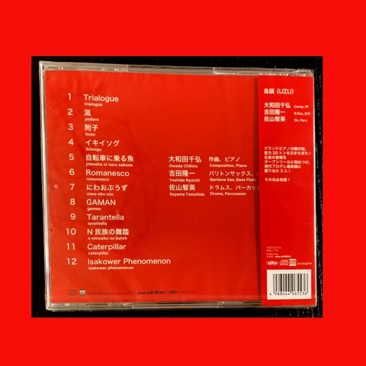 ★烏頭(うず)★2012年、アカデミックな作曲を学んだ大和田千弘(pf)により結成、旋律楽器のような流れるアプローチで構造の要に力を示す佐山智英(dr)、昨年加入した「SF+フリージャズ」トリオ『ブラック・シープ』を筆頭にフリージャズシーンで活動する吉田隆一(b.sax/b.fl)のトリオでの初録音盤。バンド名「烏頭」とは猛毒にも良薬にもなりうるトリカブトの母塊根であり、その両義性は彼らの音楽を的確に表現、西洋の現代音楽やジャズの影響を受けた緻密な楽曲の上に生々しく相互に絡みあうような即興も取り入れた生命力のある音楽を展開。